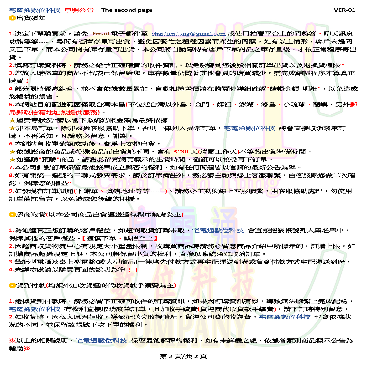 2.本公司 店到店 物流模式,只限些特定商品為主,可 店到店 物流運送的商品,會標示在商品內的“詳細說明”裡,本公司 考量在運送過程中,依商品重量、商品安全為優先,未標示的都以宅配貨運為主,懇請見諒。